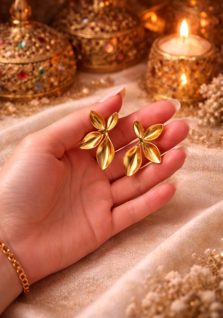 Die Arwen Bloom Ohrringe überzeugen durch ihr organisches Blüten-Design und ihren warmen Goldton. Die fein geschwungenen Blätter verleihen dem Schmuckstück eine feminine, zeitlose Ausstrahlung- perfekt für Alltag und besondere Anlässe.