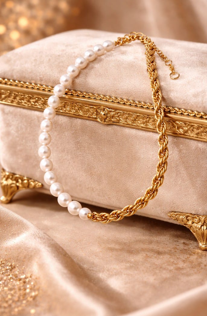 Echte Süßwasserperlen und kombiniert mit einer hochwertigen 18K PVD-vergoldete Edelstahlkette, verkörpert dieses Schmuckstück luxuriösen Minimalismus.